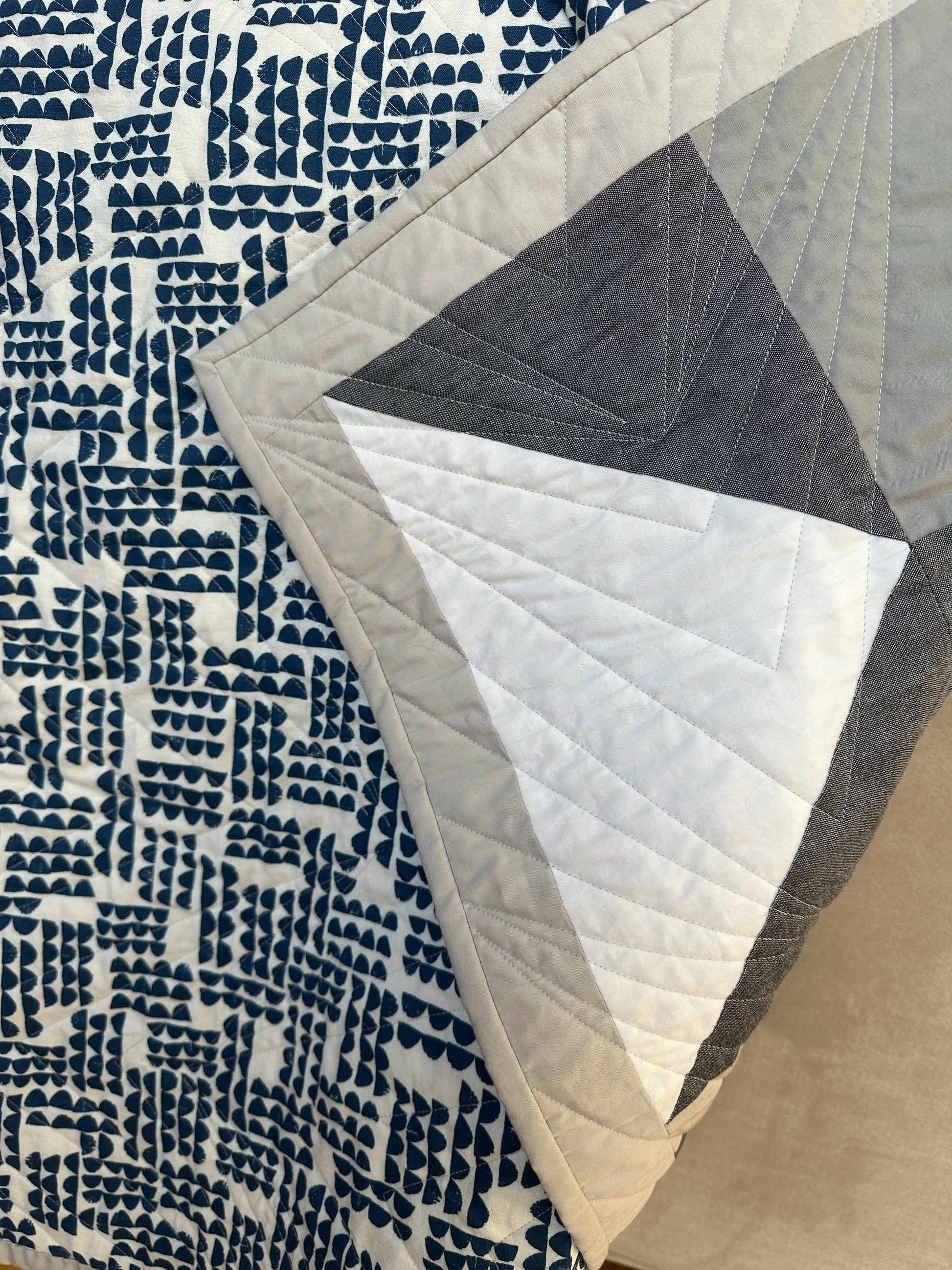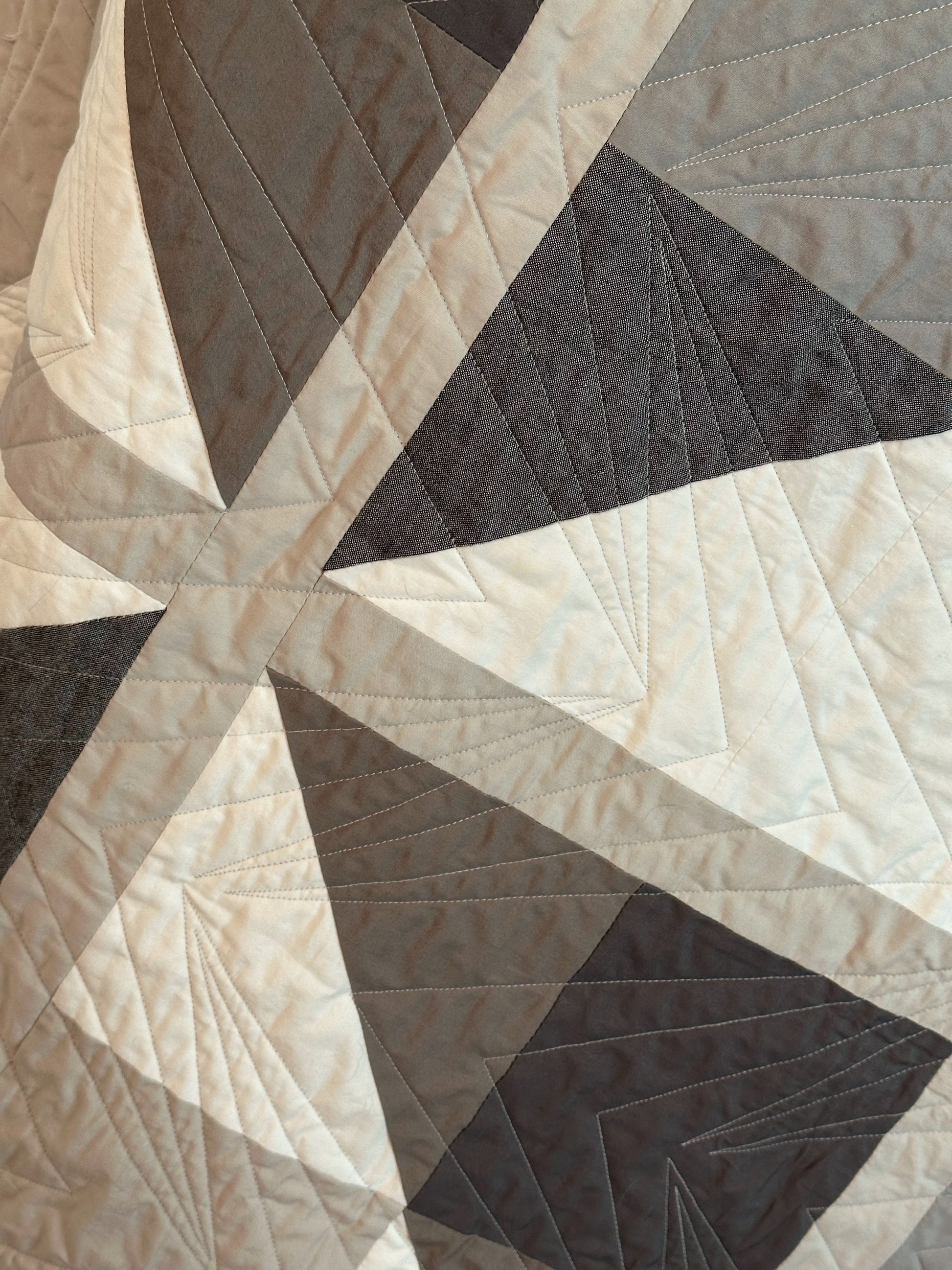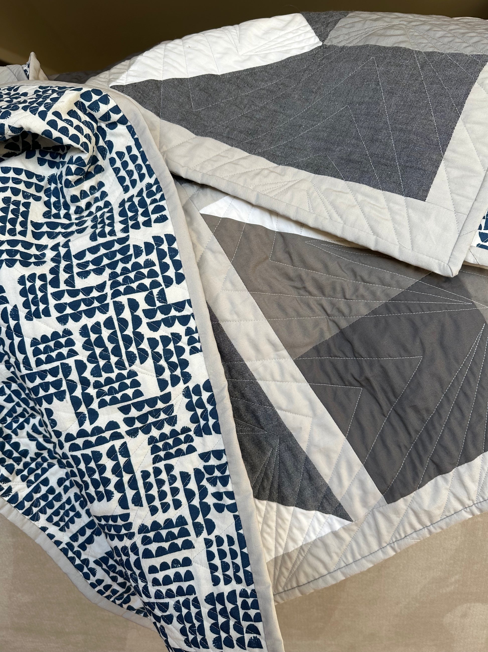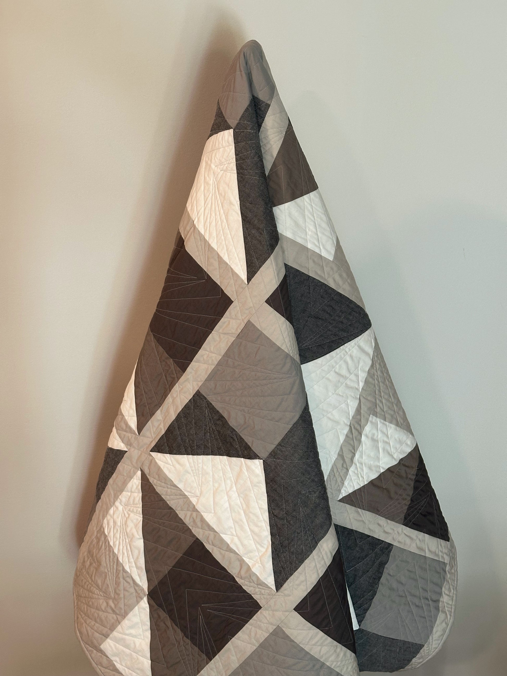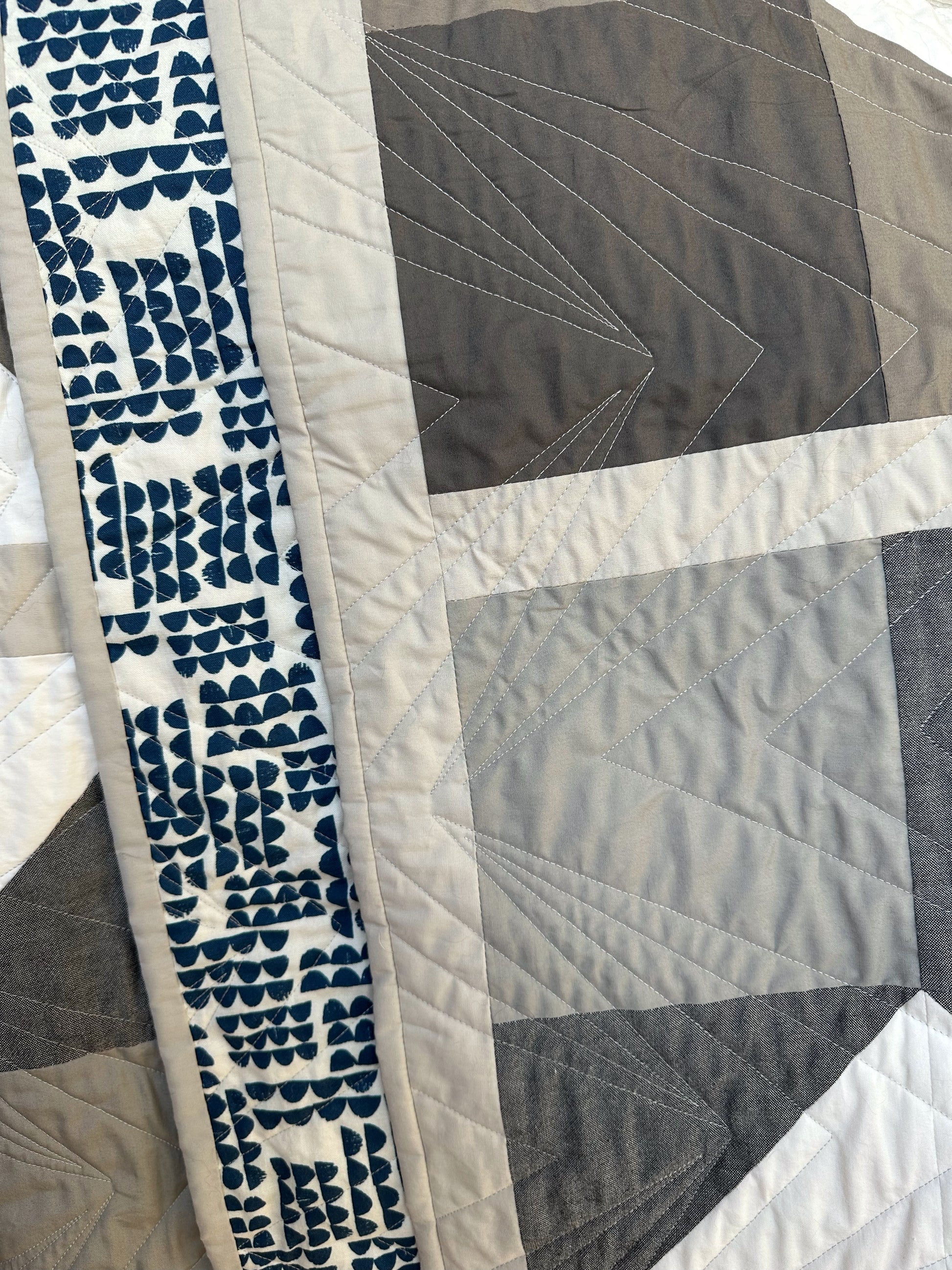This quilt was inspired by the winter. Soft shades of gray and white come together in Winter Whisper, a quilt that feels as calm and peaceful as freshly fallen snow. Its neutral palette makes it timeless and versatile — perfect for cozying up on the couch, layering on a bed, or gifting as a keepsake. Every stitch is a blend of comfort and elegance, designed to bring warmth to even the chilliest days.